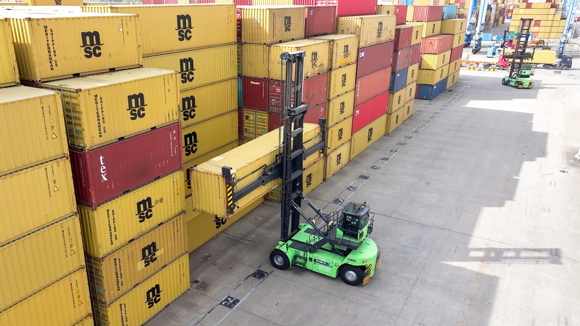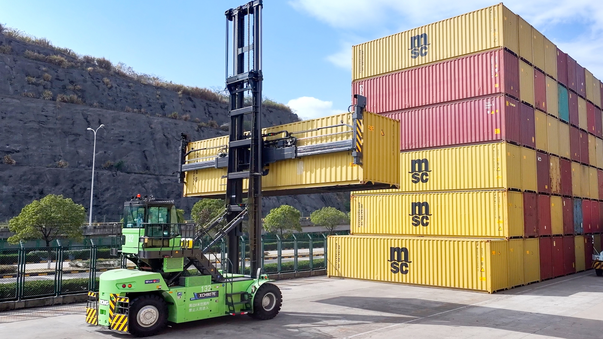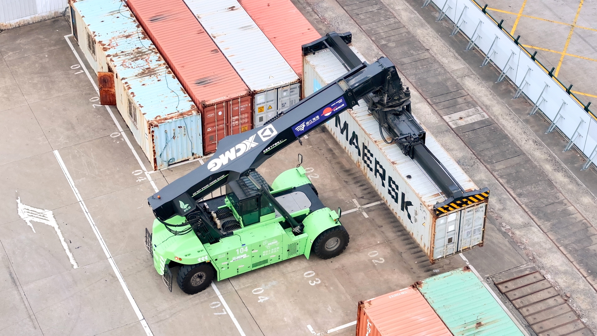 針對集裝箱堆存、轉(zhuǎn)運(yùn)等核心場景,徐工打造了涵蓋電動正面吊、堆高機(jī)在內(nèi)的成套純電裝備矩陣。其中,領(lǐng)跑行業(yè)的電動堆高機(jī),已成為高端綠色碼頭的標(biāo)配。在浙江海港的多處關(guān)鍵作業(yè)前沿,這套方案正構(gòu)建高效、協(xié)同的智慧作業(yè)新生態(tài)。