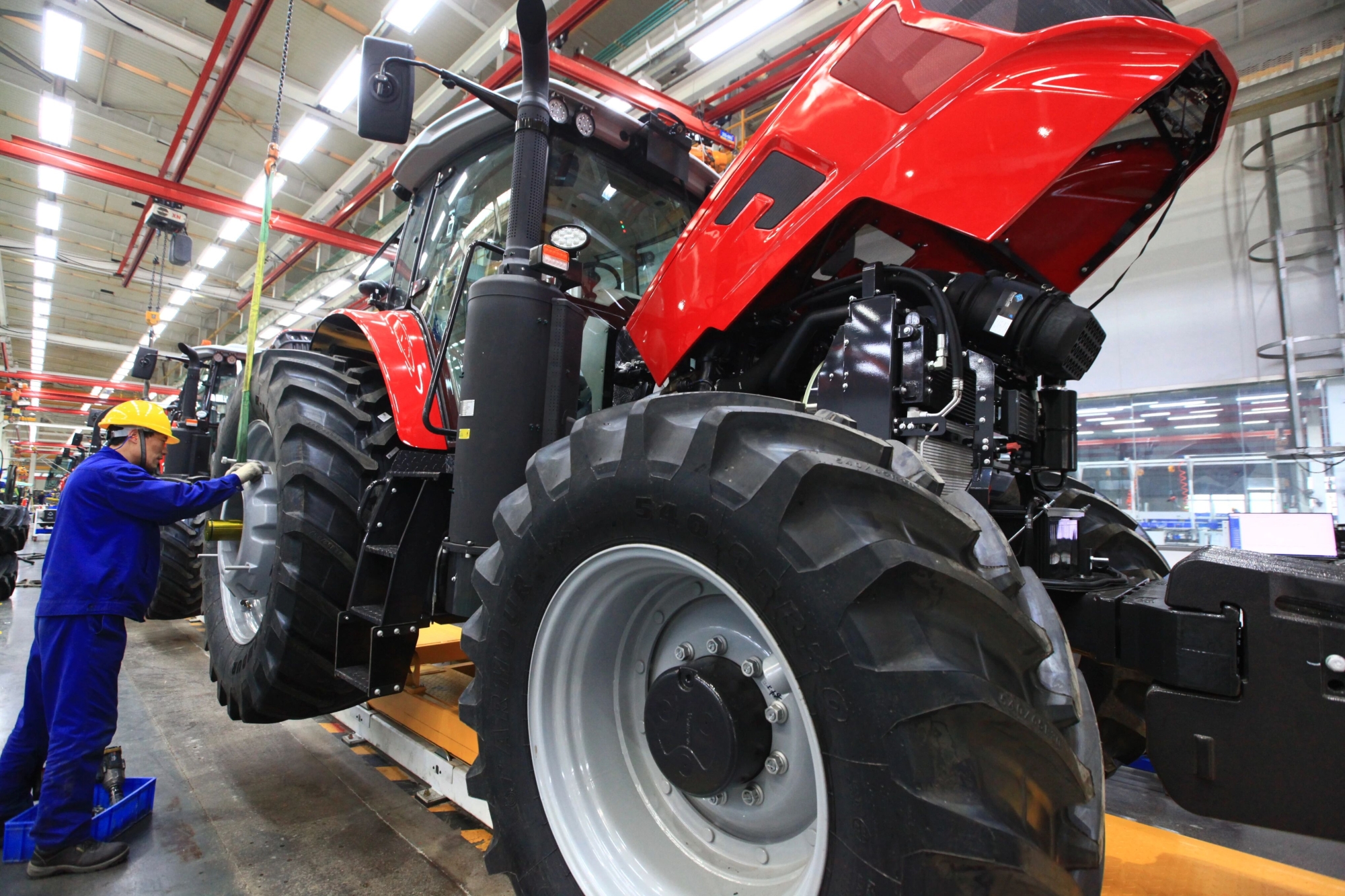 徐工農(nóng)業(yè)機(jī)械智能制造基地項(xiàng)目一期收獲機(jī)、拖拉機(jī)產(chǎn)線已順利投產(chǎn),二期正在進(jìn)行規(guī)劃方案設(shè)計(jì)。宋樂偉、沈峻峰走進(jìn)展廳,了解企業(yè)“十五五”發(fā)展規(guī)劃、核心零部件研發(fā)等情況,實(shí)地察看拖拉機(jī)總裝、變速箱裝配、底盤裝配、駕駛室裝配等生產(chǎn)線,勉勵(lì)企業(yè)依托徐工協(xié)同創(chuàng)新優(yōu)勢(shì),聚焦核心技術(shù)突破,加大產(chǎn)品研發(fā)投入,做大做強(qiáng)農(nóng)業(yè)機(jī)械產(chǎn)業(yè)板塊,為推進(jìn)農(nóng)業(yè)現(xiàn)代化貢獻(xiàn)徐工力量。