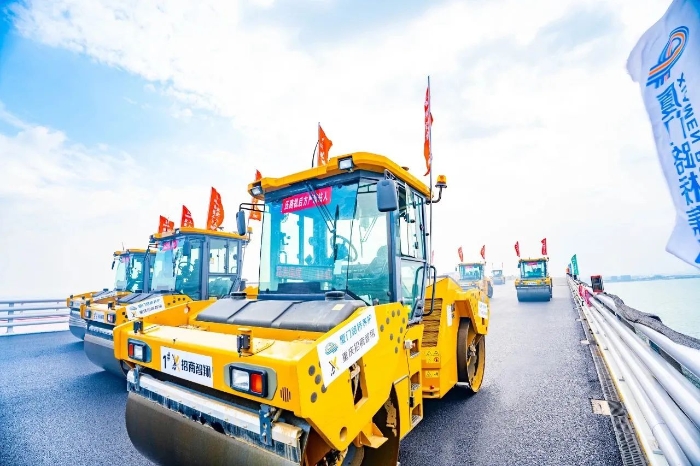 翔安大橋在建設(shè)中既要克服海上風(fēng)浪大、潮差高、巖層強(qiáng)度高、跨越生態(tài)保護(hù)區(qū)等困難,又要兼顧綠色環(huán)保;要在這種復(fù)雜的環(huán)境中保證施工質(zhì)量,對(duì)設(shè)備和施工技術(shù)的選擇就顯得尤為重要。徐工數(shù)字化智能施工集群憑借其智能化、高精度、高效率等顯著優(yōu)勢(shì),成功克服了傳統(tǒng)施工方式難以應(yīng)對(duì)的諸多難題,可精準(zhǔn)適配翔安大橋的橋面鋪裝工作。