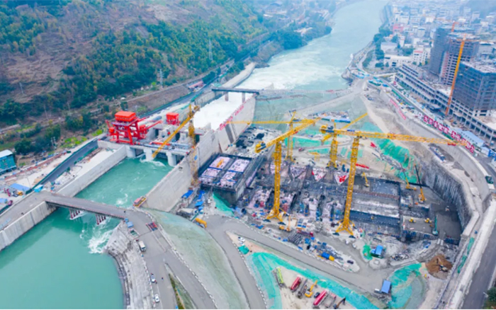 該水電站位于四川省樂山市金口河區(qū)境內(nèi),是四川省“十四五”重點(diǎn)建設(shè)項(xiàng)目,項(xiàng)目完成后,總裝機(jī)容量30萬千瓦,預(yù)計(jì)年平均發(fā)電量15.03億千瓦時(shí),對(duì)促進(jìn)國(guó)家清潔能源基地建設(shè)、實(shí)現(xiàn)“雙碳”目標(biāo)意義重大。項(xiàng)目主要設(shè)有五孔泄洪閘、發(fā)電廠房、兩岸混凝土重力壩、魚道等水工建筑物,壩體最高54米。