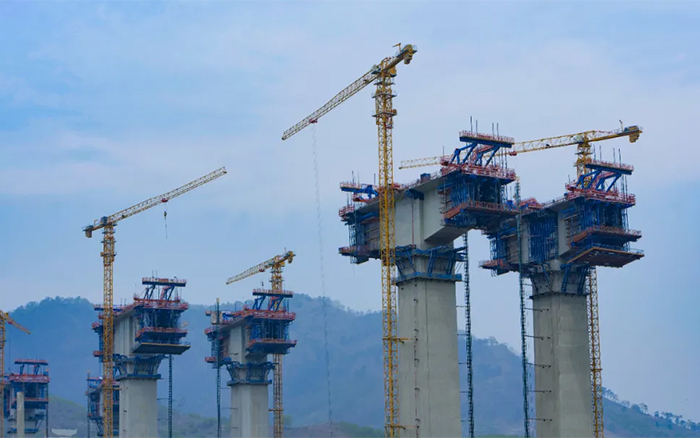雅長特大橋地處高海拔山區(qū),山坡高聳峻峭,沿線山高谷深,地勢起伏大,相對高差達(dá)270米,使得橋梁工程墩柱高、跨度大、T構(gòu)多。面對超高墩施工風(fēng)險高、技術(shù)要求高、作業(yè)場地狹窄等難題,十余臺徐工XGT6013-6S1、XGT6515-10S1憑借精準(zhǔn)、高效、安全的吊裝性能,將桁架鋼筋、箱梁護(hù)板等部件吊至百米高空,為項(xiàng)目建設(shè)提質(zhì)增效。