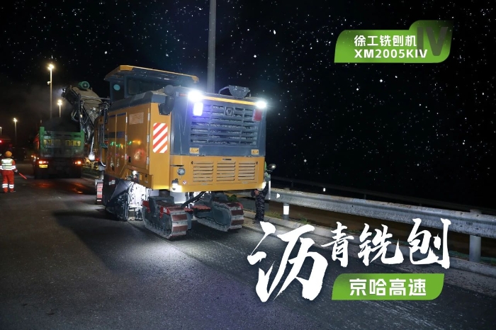 此次施工項目為京哈高速的路面改擴建工程,銑刨深度5cm,銑刨速度25m/min。由于北京地區(qū)日間車流量大,交通壓力較大,因此施工方選擇在夜間施工,日間恢復(fù)行車,盡量避免施工給交通帶來影響。由于夜間施工更加考驗施工設(shè)備的穩(wěn)定性、施工質(zhì)量的可靠性,施工方選擇了兩臺徐工兩米銑刨機作為本次高速公路養(yǎng)護工程的銑刨設(shè)備,分別為XM2005KIV和XM200KII,同時進行銑刨作業(yè),并肩作戰(zhàn),按下施工進度快進鍵。