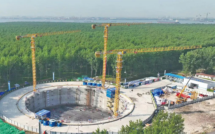 張靖皋長(zhǎng)江大橋南航道橋北主塔工區(qū)1.5萬噸米塔式起重機(jī)順利驗(yàn)收,徐工XGT15000-600S最大起升高度400米,最大起重量600噸,搭載了10項(xiàng)世界首創(chuàng)技術(shù)。