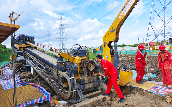 為了確保定向鉆穿越有序推進(jìn)和回拖順利完成,徐工技術(shù)人員隨項(xiàng)目部提前對(duì)現(xiàn)場(chǎng)進(jìn)行實(shí)地勘察,培訓(xùn)作業(yè)人員,開展管道回拖演練。施工過程中,擴(kuò)管回拖到泥巖層時(shí),土質(zhì)粘稠抱鉆,徐工XZ6600水平定向鉆機(jī)搭載的“扭矩自適應(yīng)自動(dòng)巡航施工技術(shù)”“多工況調(diào)速和旋轉(zhuǎn)”“推拉多檔控制技術(shù)”為回拖提供了更大的扭矩,確保了工程順利推進(jìn)。