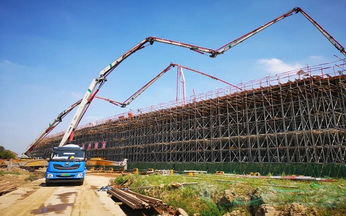 驕陽灼灼,機(jī)械轟鳴。近日,在江蘇省重點(diǎn)交通建設(shè)工程-江陰靖江長江隧道建設(shè)現(xiàn)場,徐工泵車及純電動攪拌車多機(jī)合作,憑借先進(jìn)技術(shù)和優(yōu)越性能,圓滿完成橋面混凝土澆筑任務(wù)。