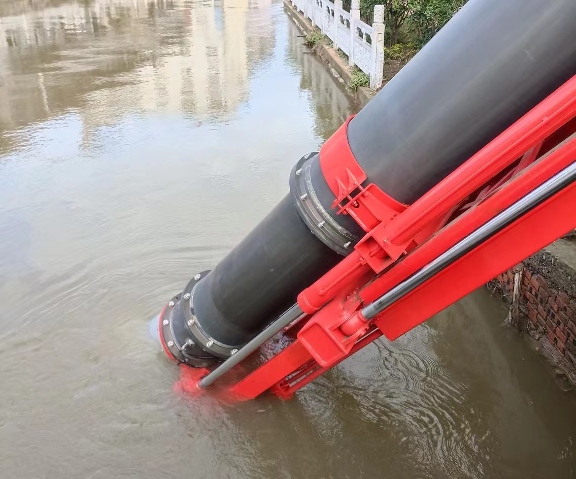 三龍支河經(jīng)縣城涵洞匯入蕭縣母親河——龍河,由于入河口的河道涵洞較小、流速較慢,難以承載過(guò)多排水量,雨停后水位仍遲遲不降,嚴(yán)重影響河道兩側(cè)居民生活。徐工救援人員聞“汛”而動(dòng),立刻趕往現(xiàn)場(chǎng)。