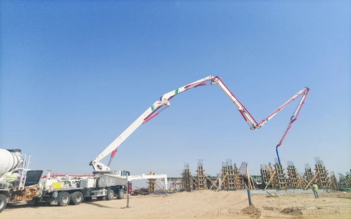 施工現(xiàn)場,秒變徐工52米泵車秀場