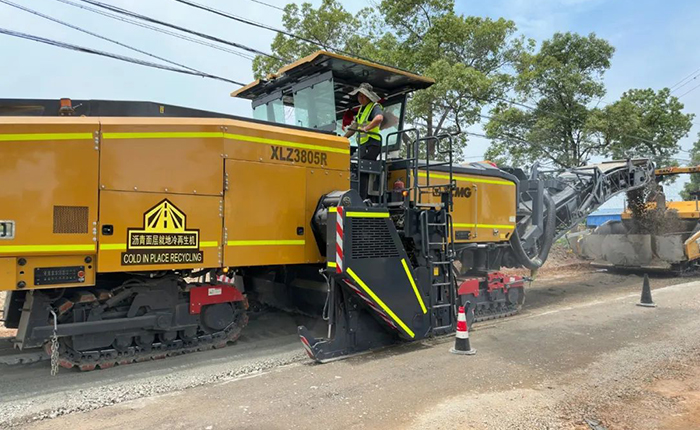 為了徹底修復(fù)路面,減輕交通壓力,盡快恢復(fù)通車,同時降低施工成本,經(jīng)過施工方案論證,采用可一次再生整幅車道的徐工XLZ3805R冷再生機的高效就地冷再生技術(shù)進行大修。