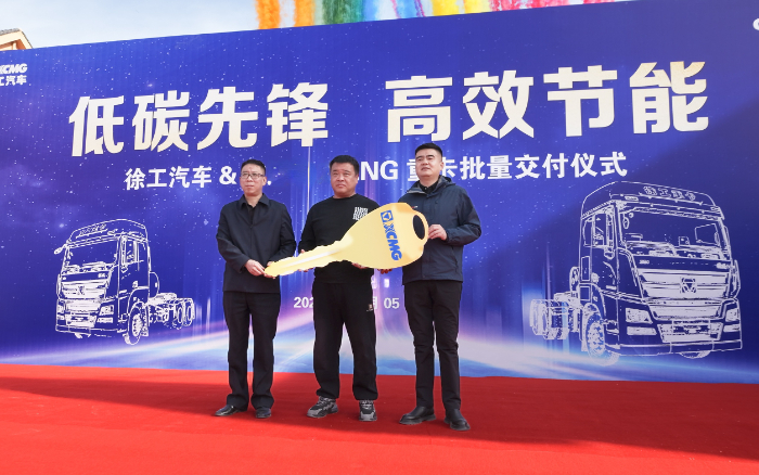 “低碳先鋒,高效創(chuàng)富”徐工天然氣牽引車200臺(tái)簽約暨批量交車儀式順利舉行,首批30臺(tái)徐工XG1H 燃?xì)鉅恳嚰w亮相并現(xiàn)場(chǎng)交付,協(xié)同西北客戶開啟低碳、高效運(yùn)輸新篇章。