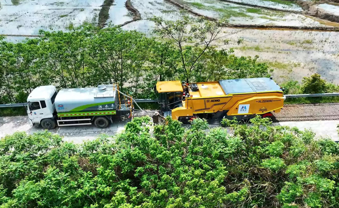 針對這些痛點,徐工智慧施工技術(shù)成套道路裝備全場景解決方案,專門針對鄉(xiāng)村道路施工場景,制定了適配的場景解決方案。該方案融合了推土、平地等多項3D控制技術(shù),并配備水泥路面冷再生機,實現(xiàn)了全斷面的數(shù)據(jù)融合,有效消除了原有路面的缺陷。特別值得一提的是,該方案將北斗定位技術(shù)與慣性導(dǎo)航系統(tǒng)相結(jié)合,巧妙解決了在定位信號不佳區(qū)域的施工難題。