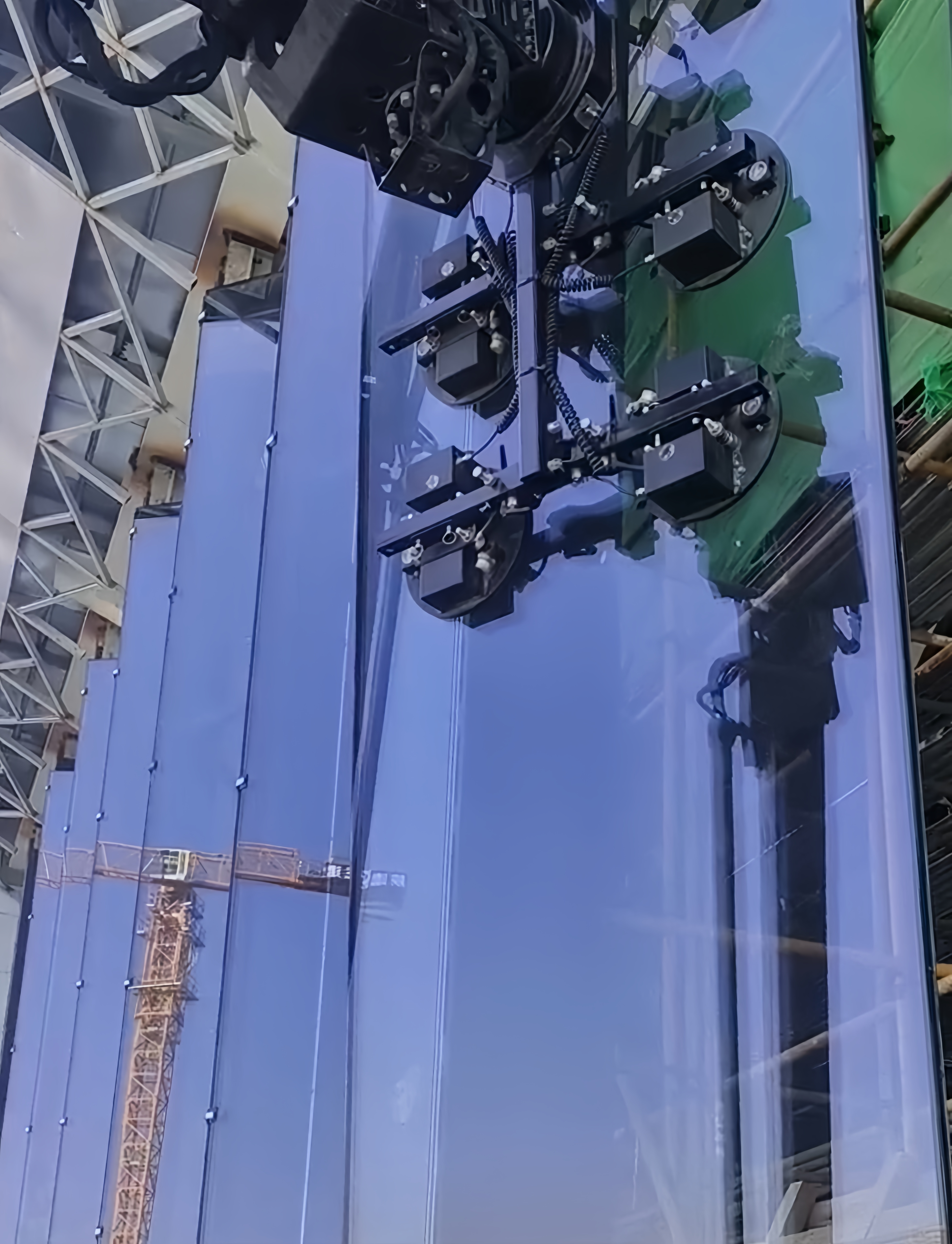 這是在西安大秦文化館玻璃幕墻安裝現(xiàn)場(chǎng)極其平常的一個(gè)場(chǎng)景,西安當(dāng)?shù)貙I(yíng)差異化設(shè)備的知名租賃商,在承接超大尺寸+超大重量的玻璃安裝時(shí),摒棄了傳統(tǒng)依賴大量的人工,輔以吊車吊裝、吊機(jī)等工具抬高作業(yè)的情況,也避免了因受力不均或碰撞,造成玻璃損壞帶來的高昂損失,保障了施工人員安全。