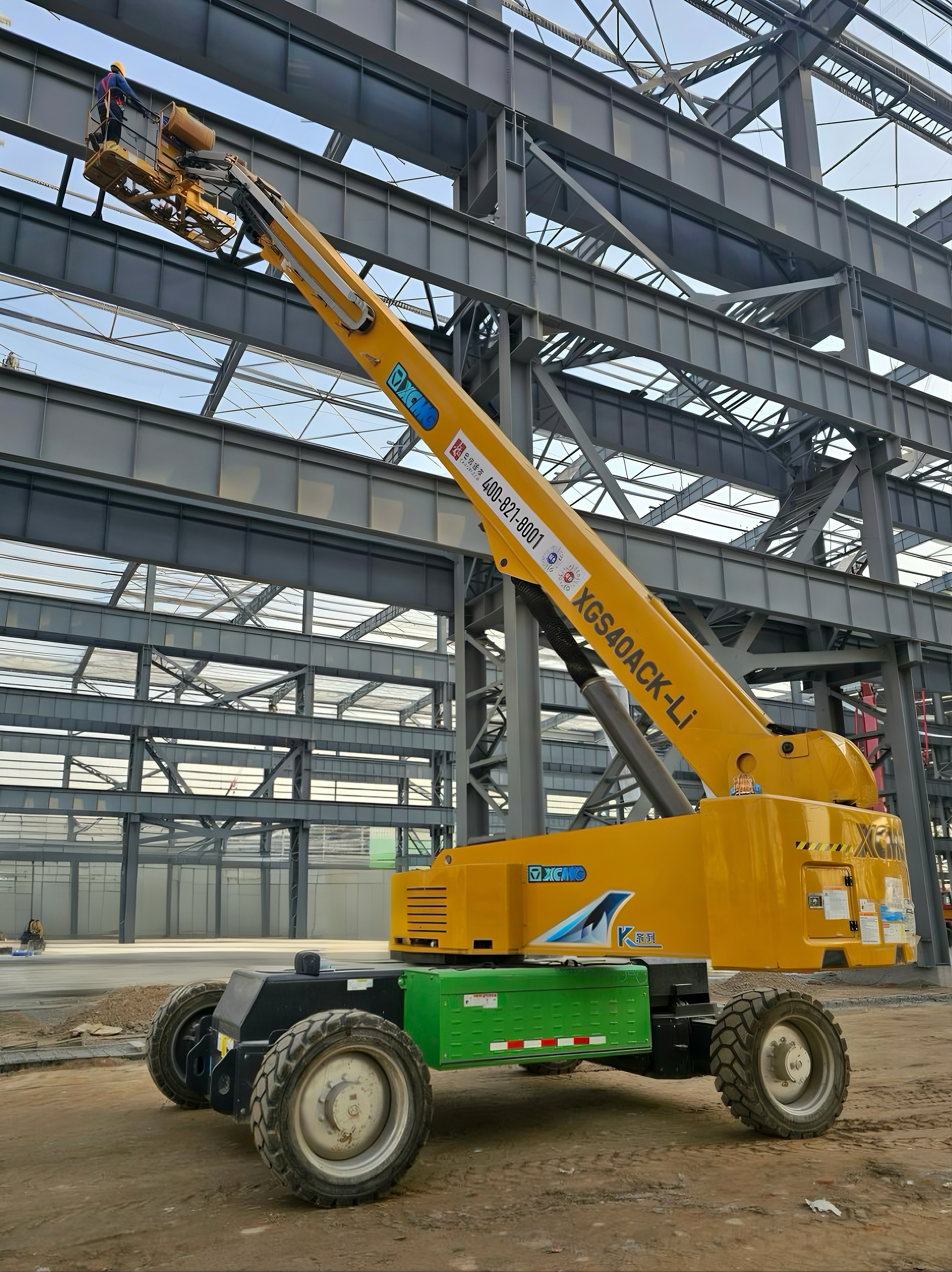 面對車間跨度大、作業(yè)面復(fù)雜等難題,兩臺產(chǎn)品展現(xiàn)超長臂展,精準(zhǔn)覆蓋高空盲區(qū),攻克了廠房鋼結(jié)構(gòu)焊接、頂棚管線鋪設(shè)等高難度施工挑戰(zhàn);低半徑轉(zhuǎn)彎的特性使車輛在廠房通道靈活穿梭,智能安全系統(tǒng)全程“護(hù)航”,大幅提高了施工作業(yè)效率。現(xiàn)場作業(yè)人員紛紛點贊:“電動化+高米數(shù)的組合,完美匹配智能化車間綠色、高效的施工需求!”