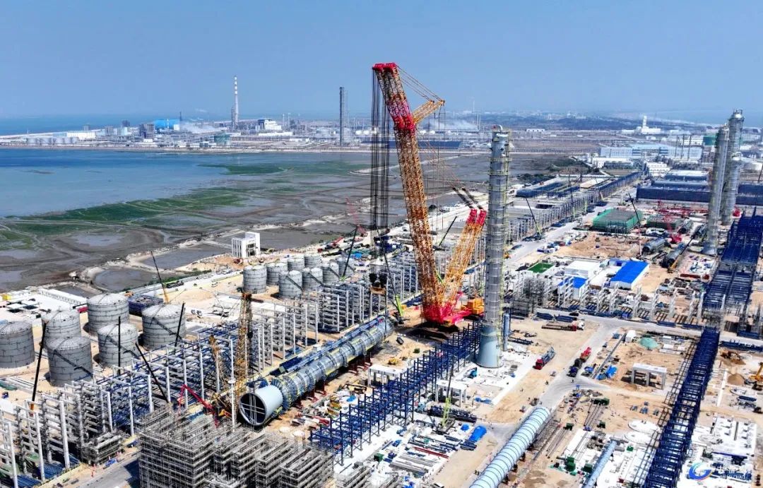 丁烯-1精餾塔吊裝精準就位 全球首臺問世的