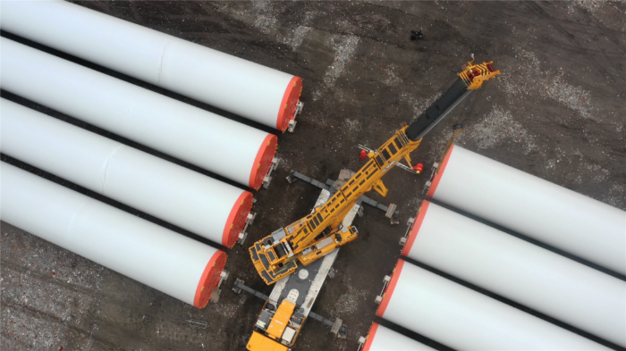 在繁忙的港口,長40米、重100噸的風(fēng)力發(fā)電塔筒擺放整齊,等待著一次關(guān)鍵的騰挪,吊裝空間局促——塔筒擺放距離較近,蕩距空間嚴重受限,這是對起重機性能與操控的極致考驗。徐工G2代起重機XCA200G8-1從容入場,以實力宣告:空間,絕非限制。