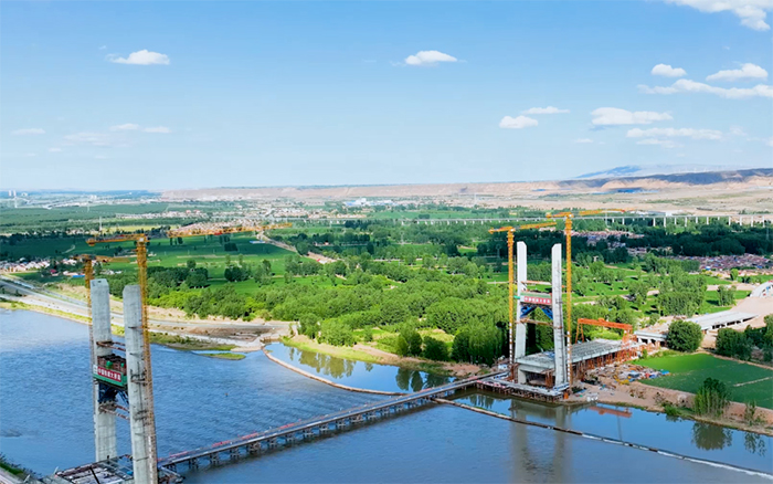 中衛(wèi)下河沿黃河公路大橋全長1228米,主塔高113米,相當(dāng)于40層樓高,是目前寧夏單跨跨徑最長、樁基最深、樁徑最粗、承臺混凝土量最大、主塔最高的斜拉橋,單體施工體量為寧夏橋梁建設(shè)史上之最。