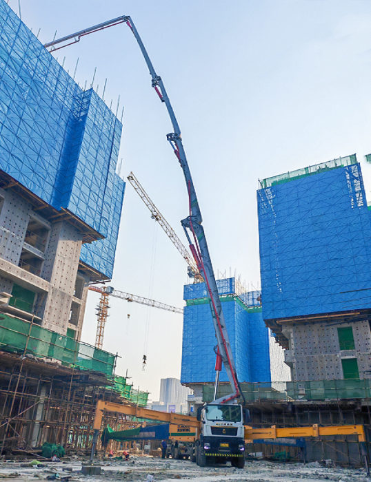 在高鐵新區(qū)超高層項(xiàng)目中,258 米地標(biāo)建筑核心筒澆筑是關(guān)鍵環(huán)節(jié),對(duì)泵車(chē)的覆蓋能力和精準(zhǔn)度要求嚴(yán)苛。徐工72米泵車(chē)以71.1 米有效長(zhǎng)度,輕松完成了這一艱巨任務(wù)。智能防傾翻技術(shù)、智能臂架技術(shù)等充分展現(xiàn)了 “中國(guó)高度” 背后的精準(zhǔn)實(shí)力。