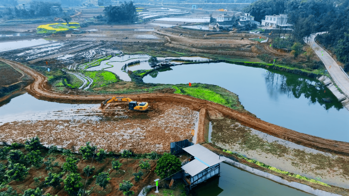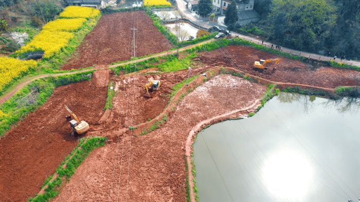 洪雅向東90公里,是仁壽縣,作為四川省產(chǎn)糧大縣,仁壽曾因田塊細碎導(dǎo)致機械化率不足。在5000畝的高標(biāo)準(zhǔn)農(nóng)田建設(shè)中,項目方集結(jié)18臺徐工挖掘機,以“日均30多畝”的速度搶抓工期。