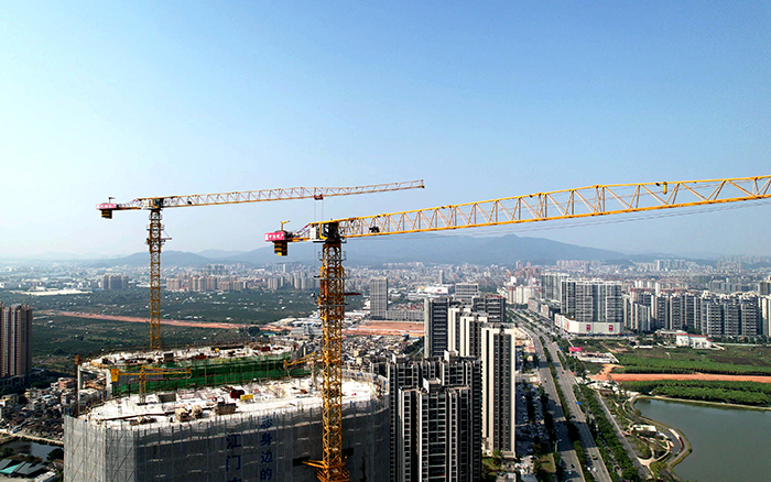 看平地又起高樓,筑城市精品工程。在廣東江門市3臺(tái)XGT6515E-10S塔機(jī)運(yùn)轉(zhuǎn)自如,正合力保障江門農(nóng)商銀行新總部大樓施工建設(shè),打造江門“標(biāo)桿銀行”。