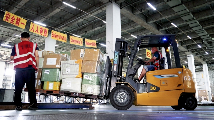 機(jī)場前置倉作為貨物進(jìn)入航空運(yùn)輸鏈路的首站,承擔(dān)著集中收貨、分揀、暫存等任務(wù),具有作業(yè)繁忙、吞吐量巨大、連續(xù)工作時(shí)間長的鮮明特征。面對(duì)日均數(shù)千噸的貨物周轉(zhuǎn)量,徐工定制化部署新能源叉車集群,匹配不同型號(hào)的產(chǎn)品來滿足搬運(yùn)需求。