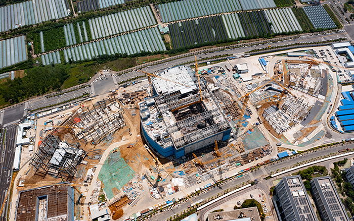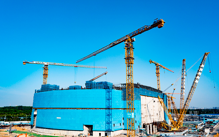 在合肥未來大科學(xué)城的核心區(qū)域,多臺徐工XGT800-40S、XGT600-25S正在系湊型聚變能實(shí)驗(yàn)裝置園區(qū)(BEST)項(xiàng)目上火熱施工。