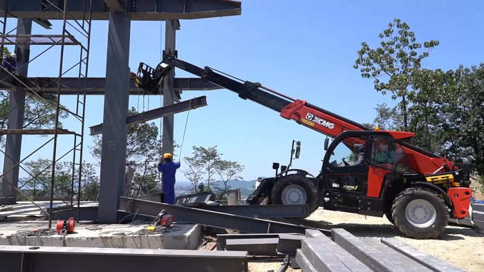 搭載鏟斗屬具變身“清潔大師”,打掃清理施工場(chǎng)地;使用貨叉屬具,搬運(yùn)鋼結(jié)構(gòu)材料穩(wěn)如泰山;配上卷?yè)P(yáng)機(jī),又穩(wěn)穩(wěn)當(dāng)當(dāng)將鋼架構(gòu)安裝到位;活脫脫上演一場(chǎng)“72變”秀實(shí)力,贏得客戶連連點(diǎn)贊。