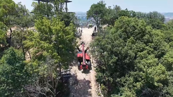 穿過羅峰寺旁的盤山公路,一抹紅色在山野間格外顯眼,徐工伸縮臂叉裝車XT4018K正將重達(dá)2.2噸的結(jié)構(gòu)物料運(yùn)送至14米的高度,全力建設(shè)全鋼結(jié)構(gòu)寺廟。