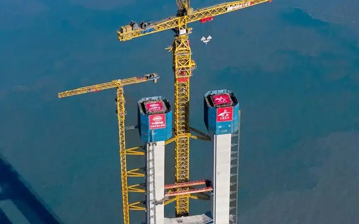 自入駐項目以來,徐工群塔以高效“協(xié)同作業(yè)模式",始終保持 “滿弓” 狀態(tài),大幅提升在有限海上作業(yè)窗口期內(nèi)的施工效率與可靠性,見證著大橋主塔節(jié)節(jié)攀升。