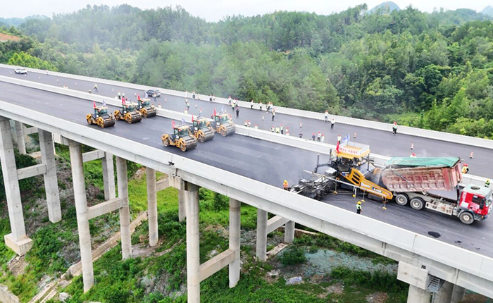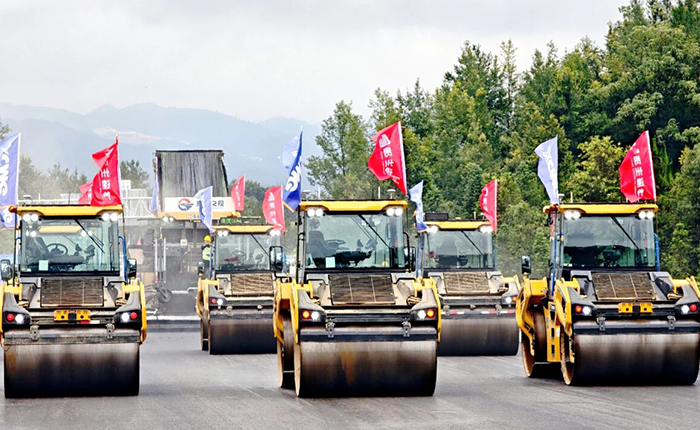 智慧施工管理平臺實(shí)時呈現(xiàn)碾壓軌跡、變速曲線、施工速度及溫度數(shù)據(jù)。攤鋪機(jī)高效輸分料系統(tǒng)適配超寬幅作業(yè),壓路機(jī)深入結(jié)構(gòu)層實(shí)現(xiàn)全維度壓實(shí),晝夜不間斷施工。