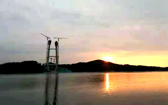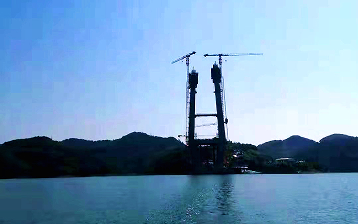 蒼翠群山環(huán)抱,一庫(kù)江水清澈。在被譽(yù)為“亞洲天池”的丹江口水庫(kù),兩臺(tái)XGT7532-20S塔機(jī)聳立岸邊,助力著又一個(gè)世界級(jí)大橋的建設(shè)!