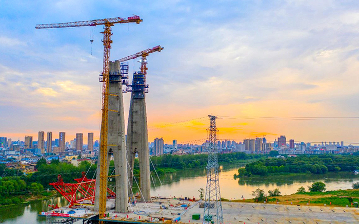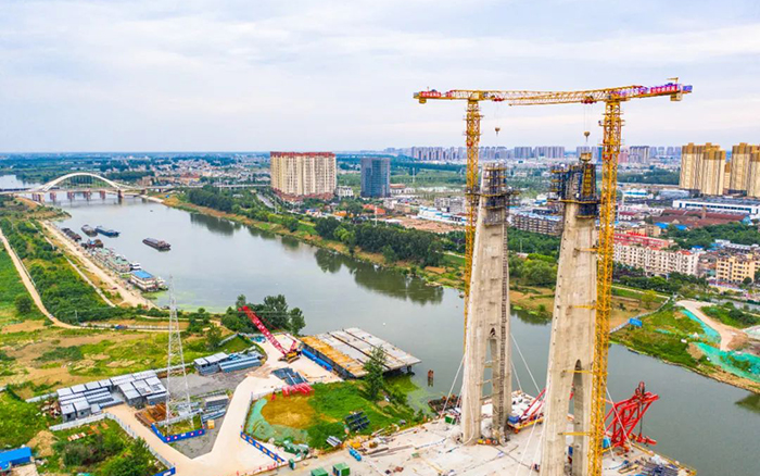 此次參建的項(xiàng)目是阜裕大橋項(xiàng)目,主要承接橋梁主塔的吊裝任務(wù)。阜裕大橋全長1735米,橋梁長1127米,主橋采用獨(dú)塔斜拉橋結(jié)構(gòu),主塔高95.6米,主橋斷面為60米超寬幅鋼箱梁,是國內(nèi)市政最寬鋼箱梁橋,建成后將成為阜陽的又一個“新地標(biāo)”。