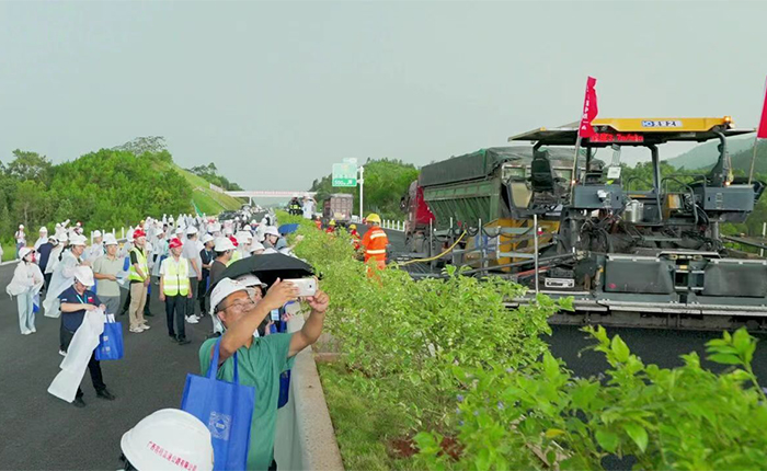 近日,在廣西梧州舉辦的“第八屆平安百年品質(zhì)工程交流會”上,蒼容高速展示了瀝青路面無人化智能攤鋪碾壓集群施工技術(shù)。這是廣西公路建設(shè)首次應(yīng)用這一先進技術(shù),標志著當?shù)毓肥┕は蛑悄芑?、無人化方向邁出了重要一步。