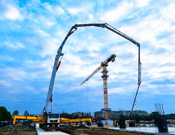 該設(shè)備依托71.1米超長臂架,實(shí)現(xiàn)廣域覆蓋與厘米級精準(zhǔn)布料,180m3/h的輸送能力保障大方量澆筑需求。