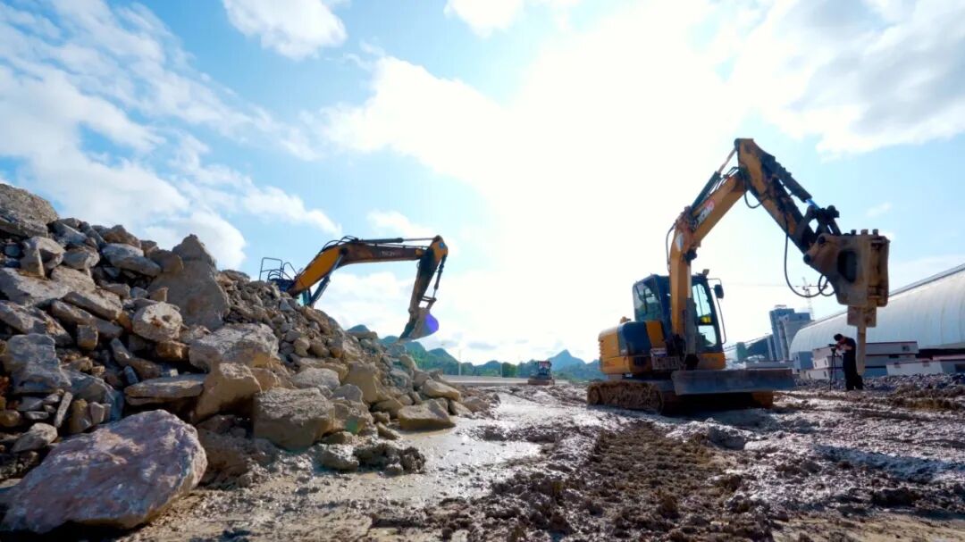 將藍(lán)圖刻于群山之巔,首戰(zhàn)便是向山巒要平地。項(xiàng)目選址地勢(shì)陡峭,土石方工程量大、精度要求高。這要求施工設(shè)備必須擁有撼山動(dòng)地的磅礴力量和舉重若輕的精準(zhǔn)控制。