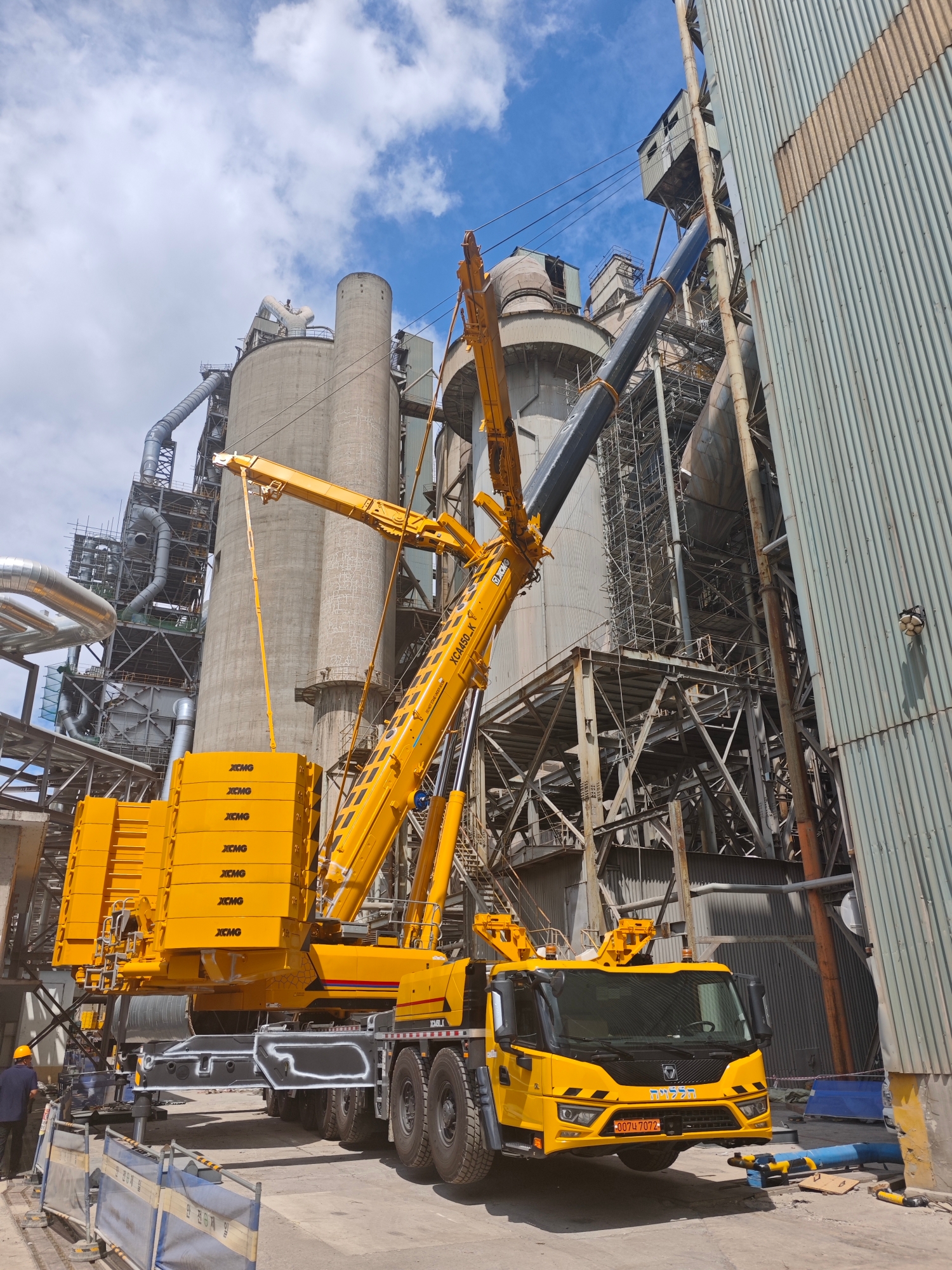 在現(xiàn)代大型水泥廠的建設(shè)與升級改造中,設(shè)備安裝往往是決定工程進(jìn)度的關(guān)鍵環(huán)節(jié)。近日,在某現(xiàn)代化水泥廠施工現(xiàn)場,一臺徐工XCA450_K全地面起重機(jī)憑借其卓越性能,成功完成了一項超起工況下的高難度吊裝任務(wù),為項目的順利推進(jìn)提供了堅實保障。