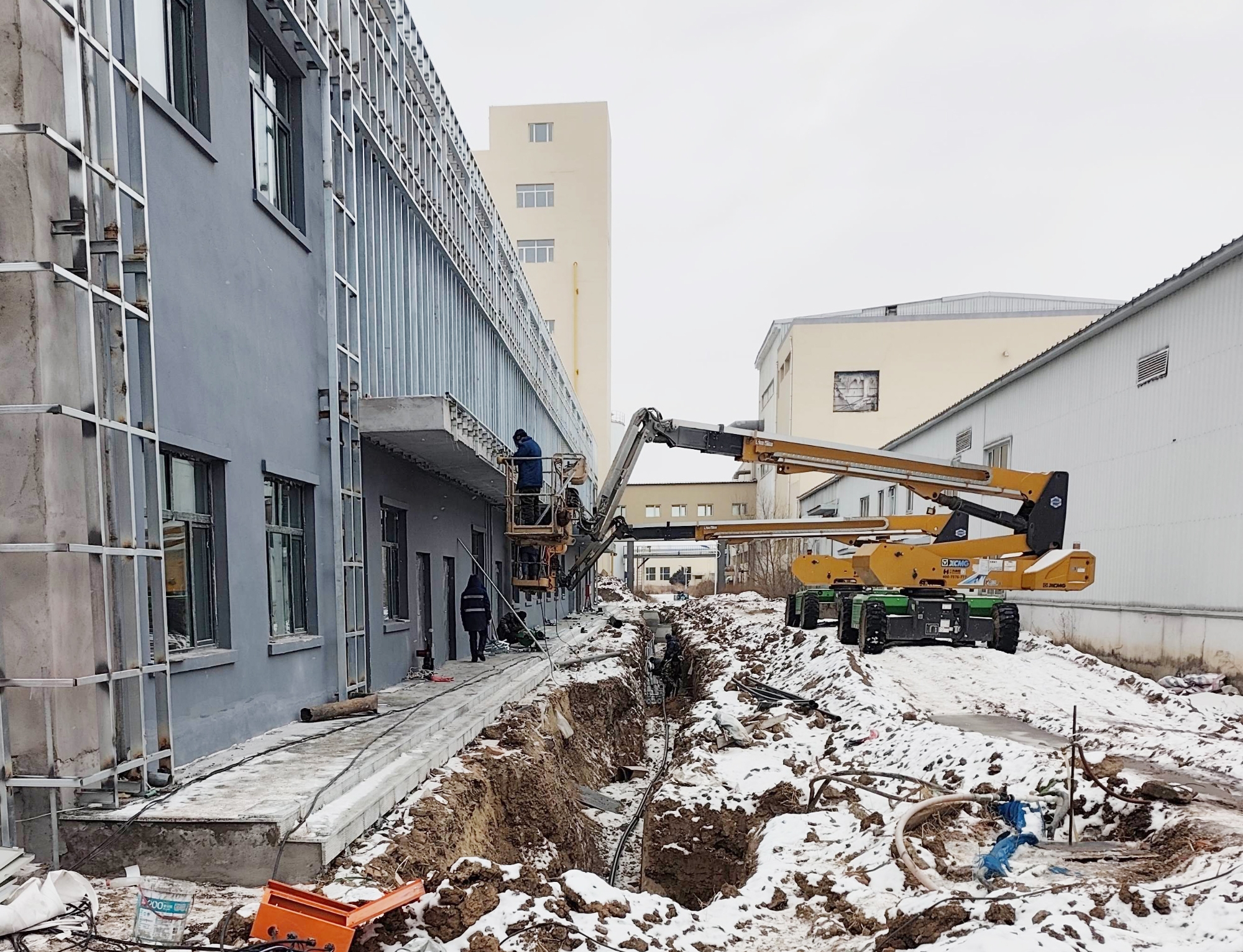 北大荒綠源冷鏈管理中心作為當(dāng)?shù)刂攸c冷鏈基建項目,施工工期緊、標(biāo)準(zhǔn)高。徐工高空作業(yè)平臺以“冰雪天不停工”的可靠表現(xiàn),為項目外立面施工提速,也展現(xiàn)了徐工工程機(jī)械在嚴(yán)寒工況下的硬核適配能力。