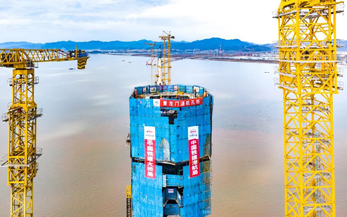 在青龍門大橋建設(shè)中,主塔毫米級精準控制與海上超高結(jié)構(gòu)吊裝成為關(guān)鍵難題。