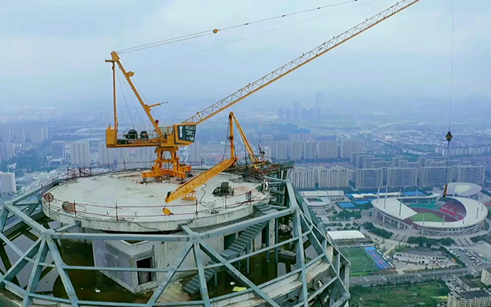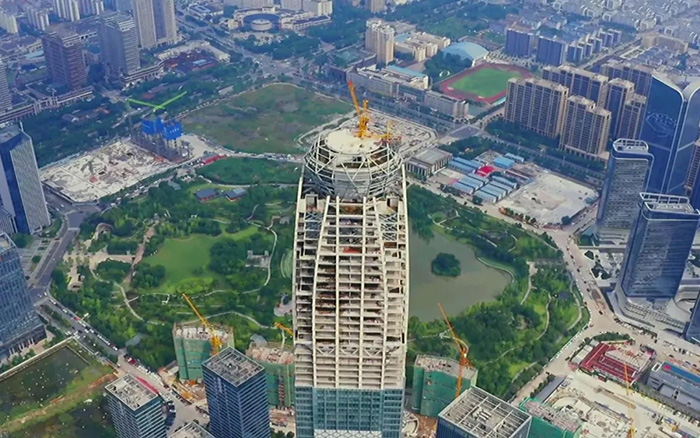 “運行平穩(wěn)可靠,起升、吊裝效率高,用得放心,保證了工期,也保障了施工安全”?!颁撹F蜘蛛俠”的完美表現(xiàn)贏得了客戶高度認可。目前,天盛中心主樓幕墻一周推進一層,極高的施工效率不斷煥新城市界面!
