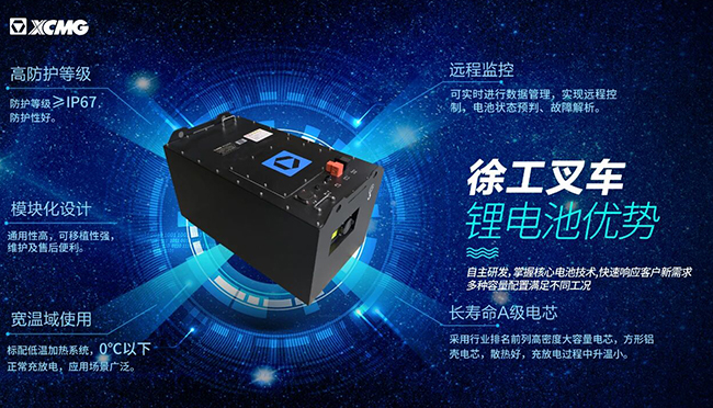 徐工叉車掌握核心電池技術(shù),鯤鵬電動叉車搭載自主研發(fā)的鋰電池,電池模塊歷經(jīng)20余項(xiàng)極限安全試驗(yàn),可在高、低溫環(huán)境正常作業(yè);大容量電池配合隨充隨用的鋰電池快充特性,使得鯤鵬電動叉車擁有超長續(xù)航能力。
