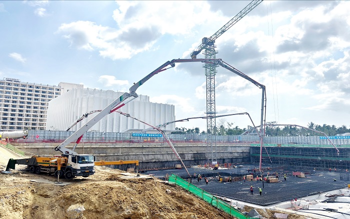 瓊浪翻涌,向海而興。在海南自貿(mào)港建設(shè)的前沿?zé)嵬痢齺啠?臺徐工大米數(shù)泵車臂架而立,憑借超強泵送力、精準(zhǔn)布料與極致穩(wěn)定性,持續(xù)攻堅、高效作業(yè),將10000方C40P8高標(biāo)號混凝土精準(zhǔn)澆筑入項目核心區(qū),為海南建設(shè)進程貢獻可靠的“徐工力量”。